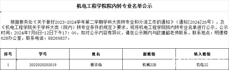 sunbet申搏院内转专业名单公示