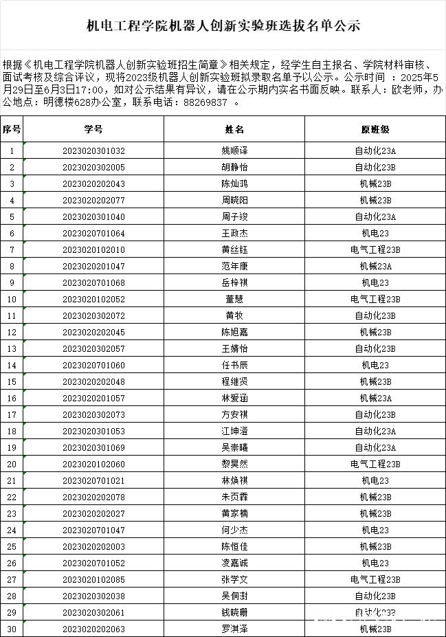 sunbet申搏机器人创新实验班选拔名单公示