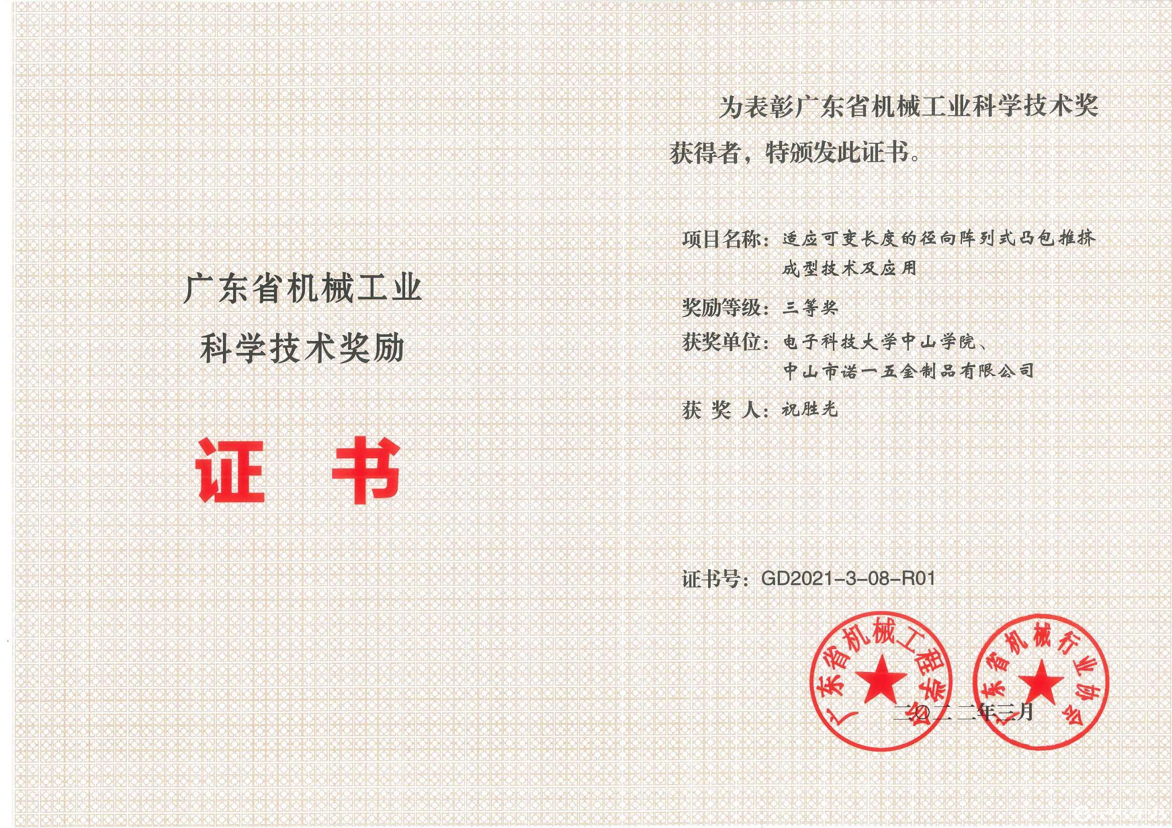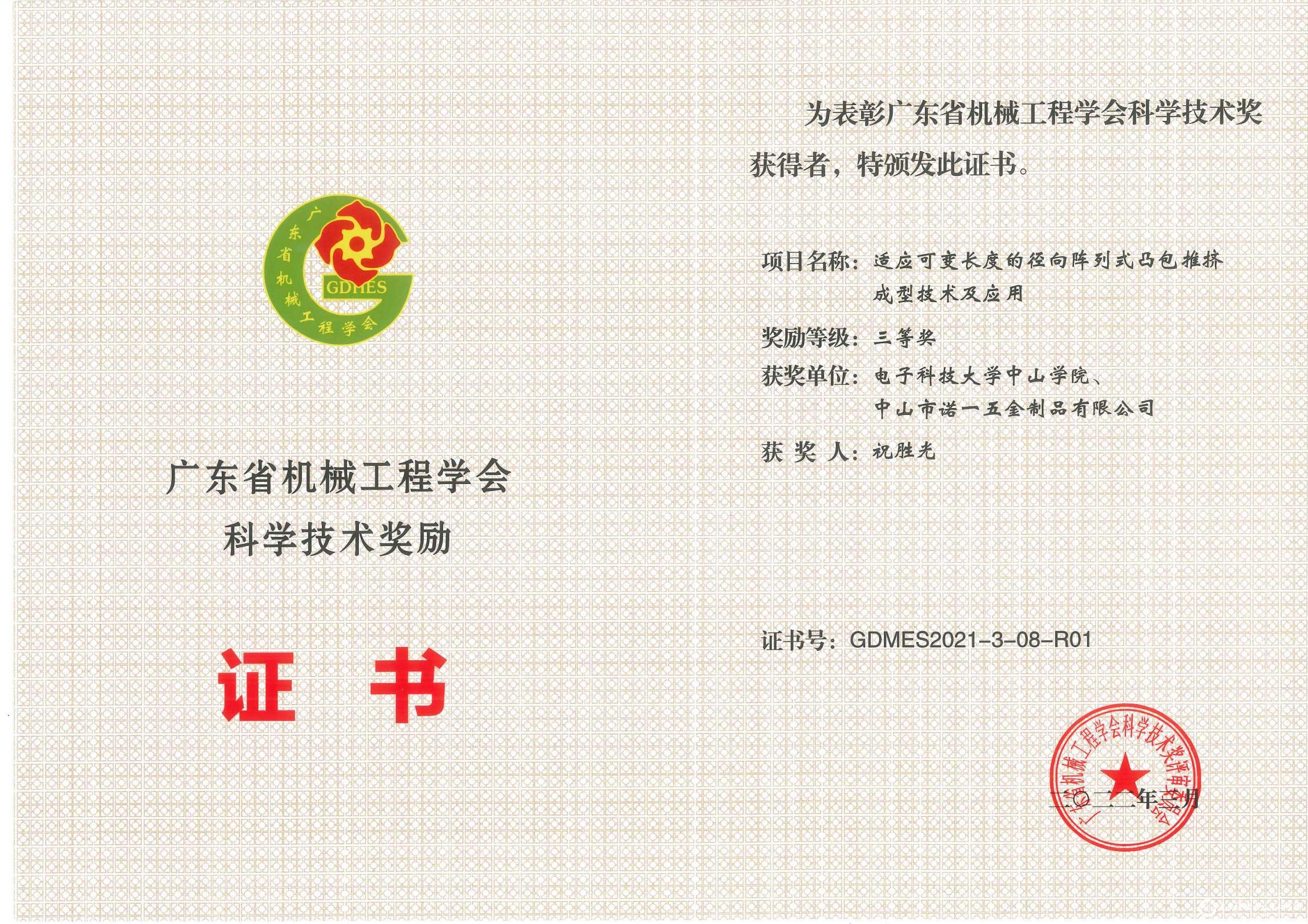 广东省机械工程学院科学技术奖励